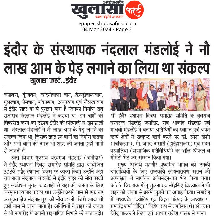 He played a significant role in promoting education in the region of Madhya Pradesh, particularly in Indore. Rao Raja Nandlal Ji Mandloi established schools and educational institutions to provide quality education to the youth of the area. His dedication to education helped in improving literacy rates and empowering the local population.